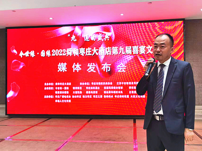 9月12日下午,由舜和棗莊大酒店主辦,棗莊市婚慶慶典協(xié)會(huì)、江蘇今世緣酒業(yè)有限公司協(xié)辦的”“九”違的盛典——今世緣·國(guó)緣 2022舜和棗莊大酒店第九屆喜宴文化節(jié)媒體發(fā)布會(huì)在舜和棗莊大酒店隆重舉行。