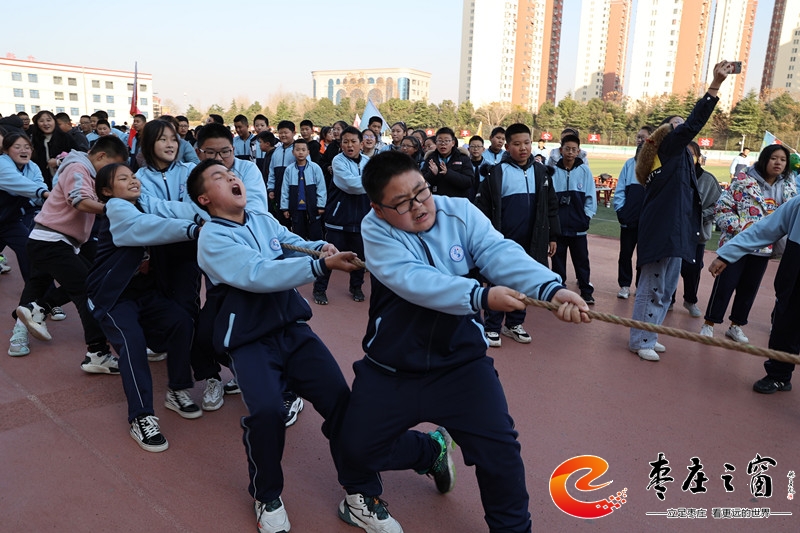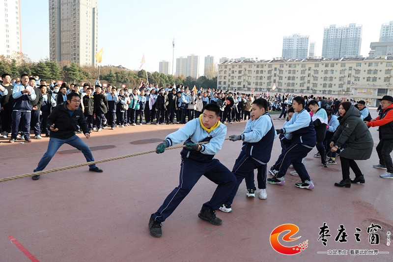 一根繩一條心 不言棄奮力拼 ——薛城區(qū)舜耕中學(xué)舉行拔河比賽活動(dòng)