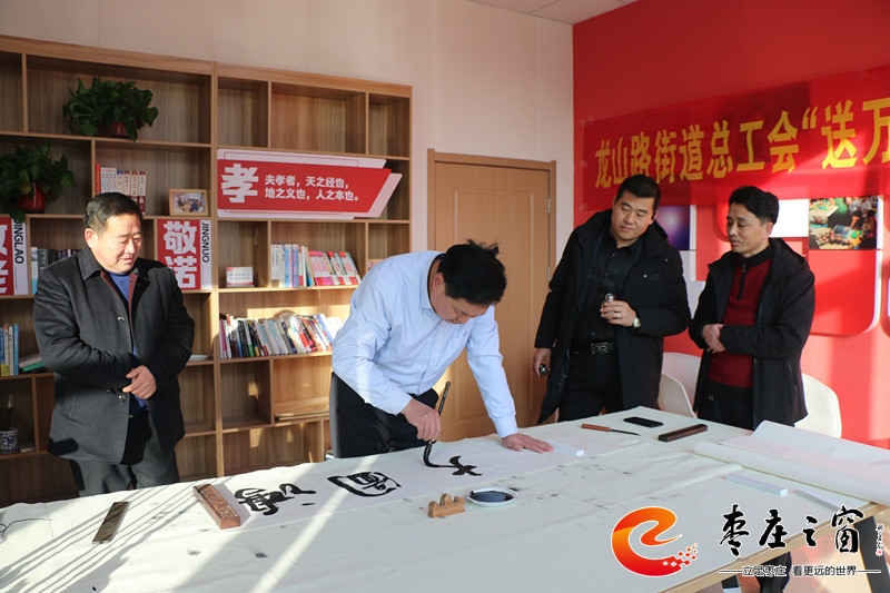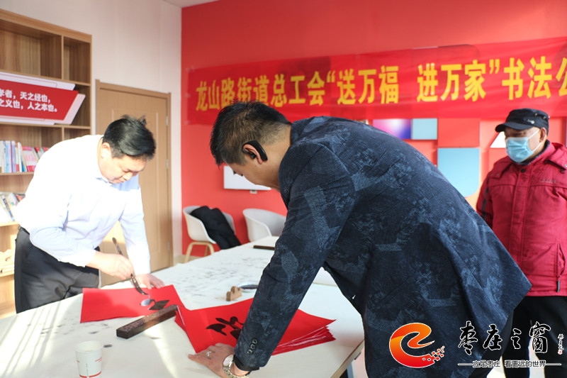 “給大家送‘!!”伴隨著新年的祝福,龍山路街道總工會的工作人員們正將書法家們寫好的一張張福字雙手遞給在場的職工。1月16日上午,市中區(qū)龍山路街道總工會在公勝街紅色驛站組織開展“送萬福 進萬家”書法公益活動,邀請省書法家協會的4位書法家代表,在活動現場手寫福字和對聯,為廣大職工群眾以及轄區(qū)企業(yè)送去新春的祝福和問候。