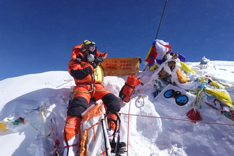 捐贈儀式上,彭向雨分享了攀登珠峰的經(jīng)歷和感受。在攀登珠峰的過程中,彭向雨經(jīng)歷了嚴寒、缺氧、雪崩、滑墜、凍傷等一系列的艱難險阻,成功登上海拔8848.86米的珠穆朗瑪峰峰頂,并將此次捐贈的旗幟展示在珠峰峰頂上,用無畏艱險、永不言敗、砥礪前行的力量,表達了攀登者登頂?shù)臎Q心和信念,也向全世界展示了棗莊人的勇氣和毅力。