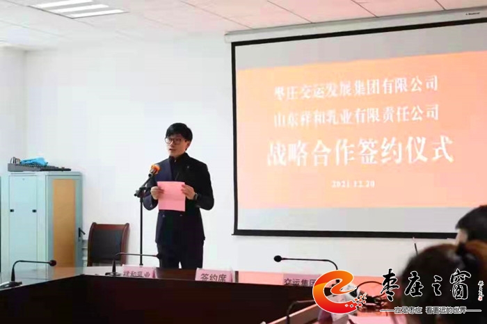 時近元旦,一元復(fù)始,萬象更新。12月20下午,山東祥和乳業(yè)有限責(zé)任公司與棗莊交運(yùn)集團(tuán)戰(zhàn)略合作框架協(xié)議簽約儀式在棗莊交運(yùn)集團(tuán)三樓會議室舉行。市國資委黨委委員、副主任孫晉卓,祥和乳業(yè)董事長闞久剛,棗莊交運(yùn)集團(tuán)黨委書記、董事長王賀龍出席簽約儀式并分別做了發(fā)言。