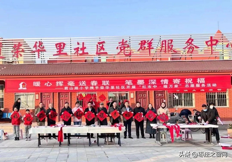 小編現(xiàn)場(chǎng)看到,紅條幅已高高掛起,原來(lái)是龍山路街道榮華里社區(qū)聯(lián)合君山路小學(xué)攜手開(kāi)展的“紅市中•暖萬(wàn)家”志愿服務(wù)活動(dòng);顒(dòng)現(xiàn)場(chǎng)邀約了書(shū)法愛(ài)好者和君山路小學(xué)的“小小書(shū)法家”準(zhǔn)備現(xiàn)場(chǎng)書(shū)寫春聯(lián)。